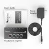- Compact microamp can power up to 4 pairs of headphones with 4 independent volume controls.